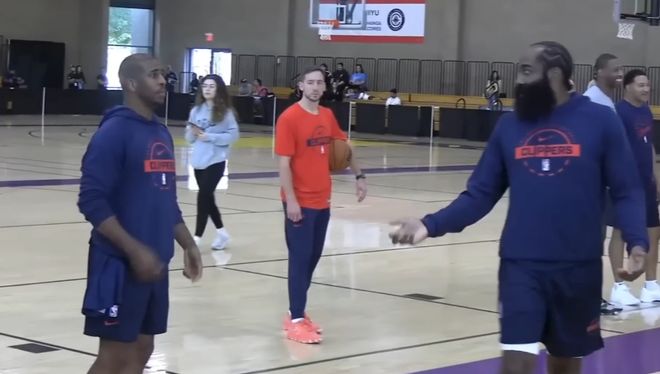 而在训练中,保罗先是找到哈登交流,让后者转达其的歉意。
